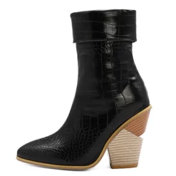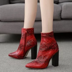 WMNS Chunky High Heel Boots With Zipper – Reptile Print