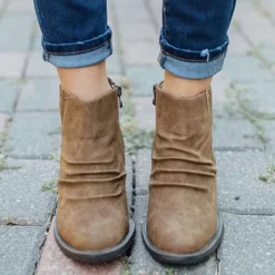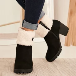 WMNS Fold Down Effect Fleece Lined Zipper Boots – High Chunky Heel