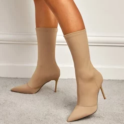 WMNS Elastic Fit Pull On Stiletto High Heel Boots – Pointed Toes