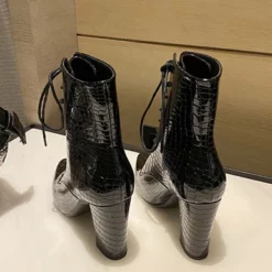 WMNS Cord Lace Front Reptile Finish Stiletto High Heel Boots