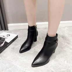 WMNS Rounded Back Mid-High Heel Pointed Toe Boots