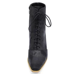 WMNS Square Block Mid-High Heel Pointed Toe Cord Laced Boots