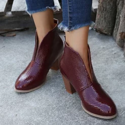 WMNS Split Front Reptile Leather Slip-On Mid-High Taper Heel Boots