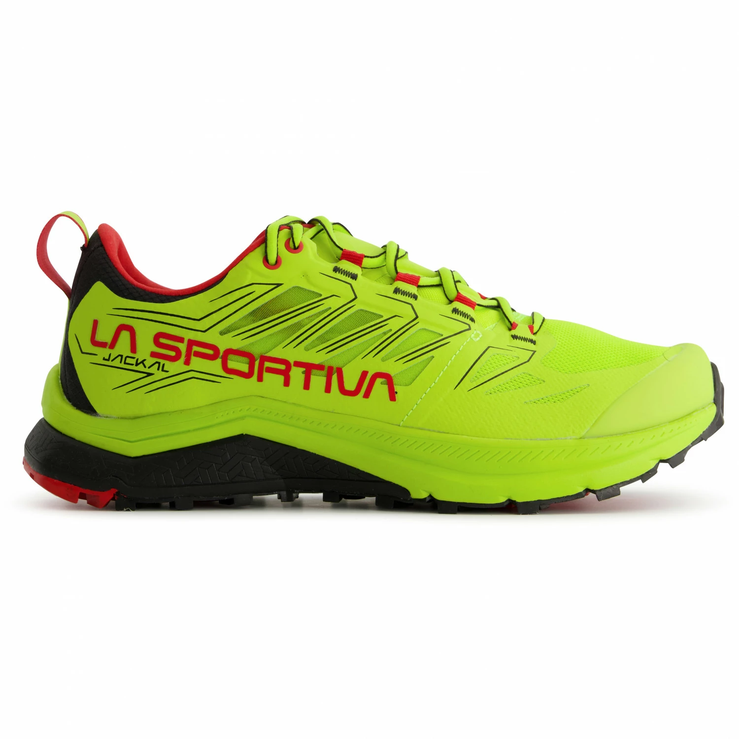 Built for running long distances and extended training sessions: Meet the comfortable Jackal trail running shoes from La Sportiva. Featuring a sandwich mesh collar, thermo-adhesive TPU reinforcements and mono-burr nylon side panels, you’re guaranteed to find the perfect fit. Plus, an elastic tongue, an internal bellow construction and flat laces ensure comfort during long, off-road runs. And, the athletic shoe is supported by a non-slip and well-cushioned sole. Now, let’s take a closer look at its sole: the EVA midsole boasts Infinitoo technology, a cushioning platform and a protective rock-shield and is combined with an Ortholite Ergonomic insole and a dual FriXion Red mix compound featuring lateral IBS lugs to completely fulfil your needs. So, if you plan on conquering many kilometres and metres of altitude, then the Jackal from La Sportiva is the way to go.