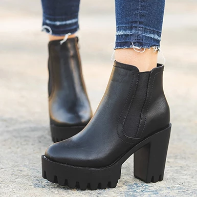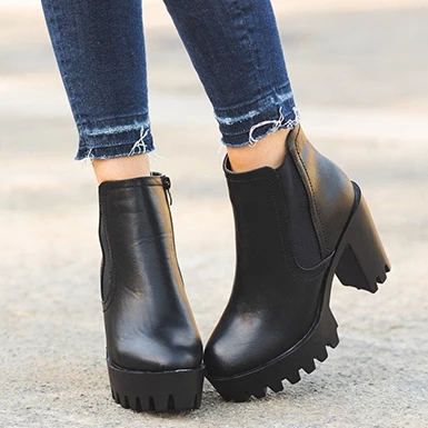 WMNS Deep Tread High Heel Leather Boots – Inside Zipper