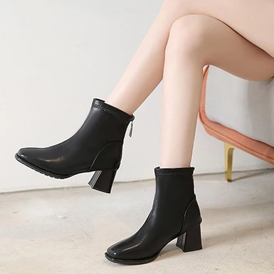 You do not have to settle for less whenever you have boots like these. The finished leather throughout the boots offers you a look of sophistication that will enhance any of your outfits that you wear them with. The reinforced stitching at the top of the boots maintains the look for years to come. A full zipper on the back of the boots makes sure you are getting the perfect fit all the time without having to utilize any laces or buckles to do so. The heel cap is created with the assistance of a seam that arcs over the top of the heel. Pointed low-profile almond shaped toe box maintains the look you are going for even when you are wearing a casual look. The pedestal chunky mid-high heels will make sure you are getting additional height while also providing you better stability. Single-color construction makes mixing and matching with the boots easier.
