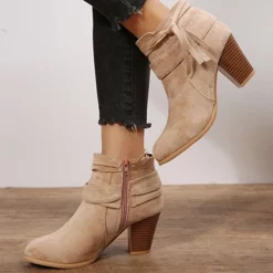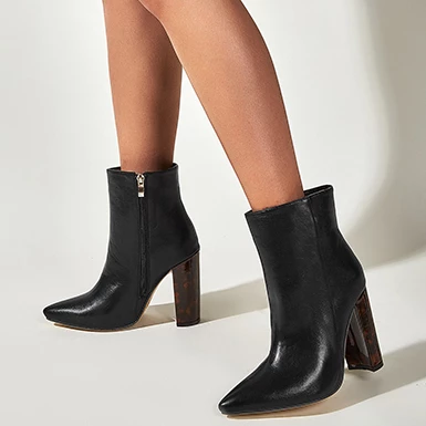 When you are looking to step out in style, you are going to love having boots like these. The pointed toe box of the boots offers you a modern style that is a lot of fun to show off. Grain leather construction still enjoys a shiny appearance that is perfect to add to stylish looks. The zipper on the inside of the boots makes it possible for you to open it all the way up so that slipping your foot inside is as easy as possible. Coming up just past your ankles, these boots are perfect for adding to just about any outfit that you are trying to create. Chunky high heels are wide a polished look that makes sure that you are going to get the look you are going for. Single color construction makes it easy for you to add these boots to your look.