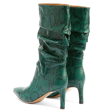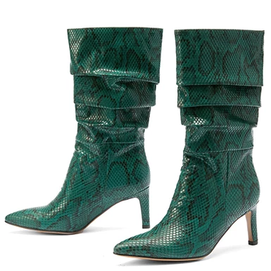 WMNS Reptile Leather Mid High Stiletto Heel Sag Boots – Pointed Toes