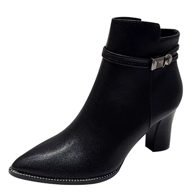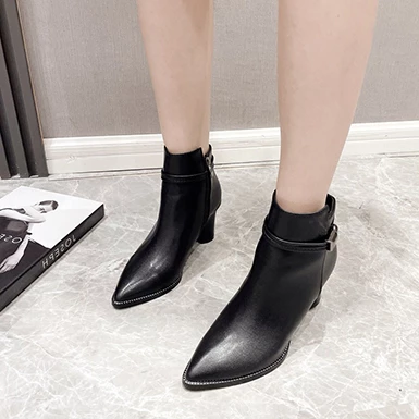 You are going to have fun creating different looks whenever you have boots like these on your feet. The leather construction of the boots makes sure they are versatile and durable. This includes a narrow double strap that wraps around the ankle to add to the overall look the boots have to offer. The full zipper on the inside of the boots helps you to slip your feet inside while getting the perfect fit and you will not even have to use any laces or straps. The pointed tow box is low profile with an elongated tip, so that these boots will be impossible to ignore. The single color throughout the boots means that you will have an easier time finding outfits you can add them to. The mid-high heel is rounded in the back to complete the look you are going for. The formed heels feature a rubber cap that will maintain your stability.