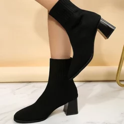 You are going to love how comfortable you are when you have boots like these available to you. The sock upper of the boots is made with elastic material that will conform to the shape of your foot. The top of the boots comes just above your ankle and is outfitted with a wide durable elastic material that gives way when you slip your feet inside. The remainder of the boot will breathe to keep your feet comfortable regardless of your activity level. The almond shaped toe box is low profile and elongated to make sure you are getting the stylish look that will elevate any outfit you pair them with. The mid-high heel is square to maintain the stylish appearance you are creating whenever you slip your feet into these attractive boots. The slick soles offer you an urban look and feel that you are going to love showing off.