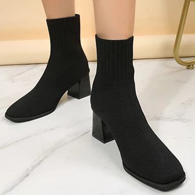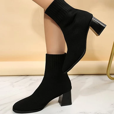 WMNS Square Mid-High Heel Sock Boots – Almond Toe