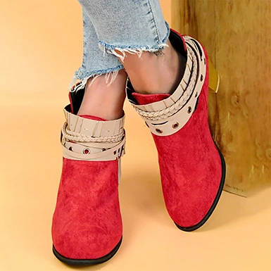 The look you are going for is possible whenever you have boots like these to wear. The suede leather construction of the boots means that you are going to have a look that is perfect for the fall and winter months. This includes a tulip opening in the top that will make walking more comfortable. The full zipper in the back makes it possible for you to easily slip your foot in and out of the boots when you are changing. Attached to the back and accenting your look are multiple straps that are in different styles, and one even has a buckle. These will offer you a style all your own. Pointed almond toe box makes sure you are getting the style that is versatile and fun. Tapered mid-high heels are stacked to complete the stylish appearance of the boots with a rubber cap that will maintain your footing while you walk.